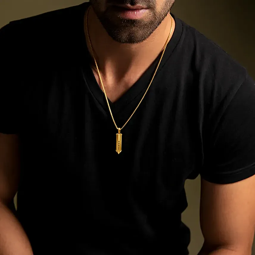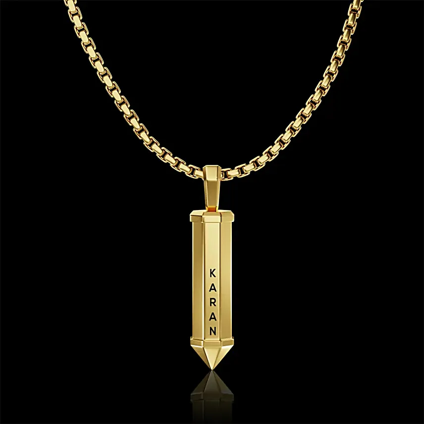 Fuerte, elegante y sin esfuerzo moderno, este colgante personalizado en color dorado es el accesorio perfecto para el hombre actual. Diseñado con una audaz forma hexagonal, este colgante transmite confianza e individualidad. Elaborado con un acabado dorado brillante, puede personalizarse con un nombre, lo que lo convierte en un recuerdo significativo. Ya sea para un cumpleaños, aniversario, graduación o un hito especial, este colgante es un regalo atemporal que añade un toque de sofisticación a cualquier estilo.